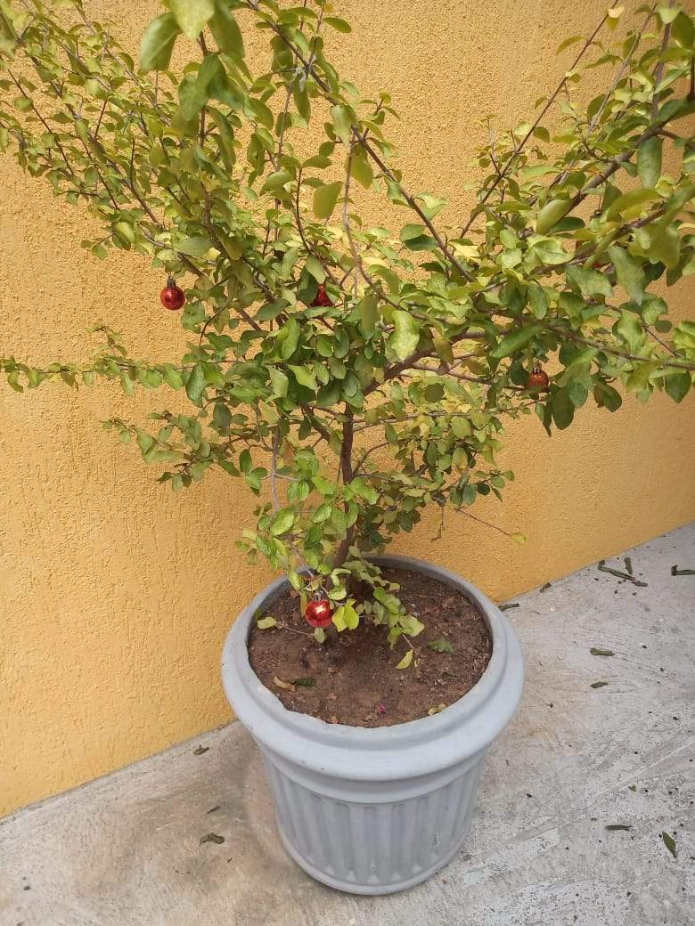 É engraçado pensar que a ideia surgiu de uma infelicidade no primeiro momento. Há alguns meses atrás colocamos um vaso com acerola do lado de fora da casa. O pensamento era enfeitar a frente da casa... mas não demorou 1 semana para alguém passar e levar o vaso.